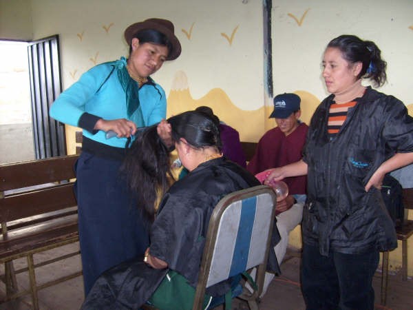 - Curso de peluquería en Esperanza. Muchas personas se mostraron entusiastas por este curso. El objetivo es formar algunos habitantes de la comunidad en esta destreza, asi se podrá ofrecer un servicio sin necesariamente bajar a la ciudad de Riobamba para cortarse el cabello y también crear una fuente de ingreso para las personas que trabajen en esto.