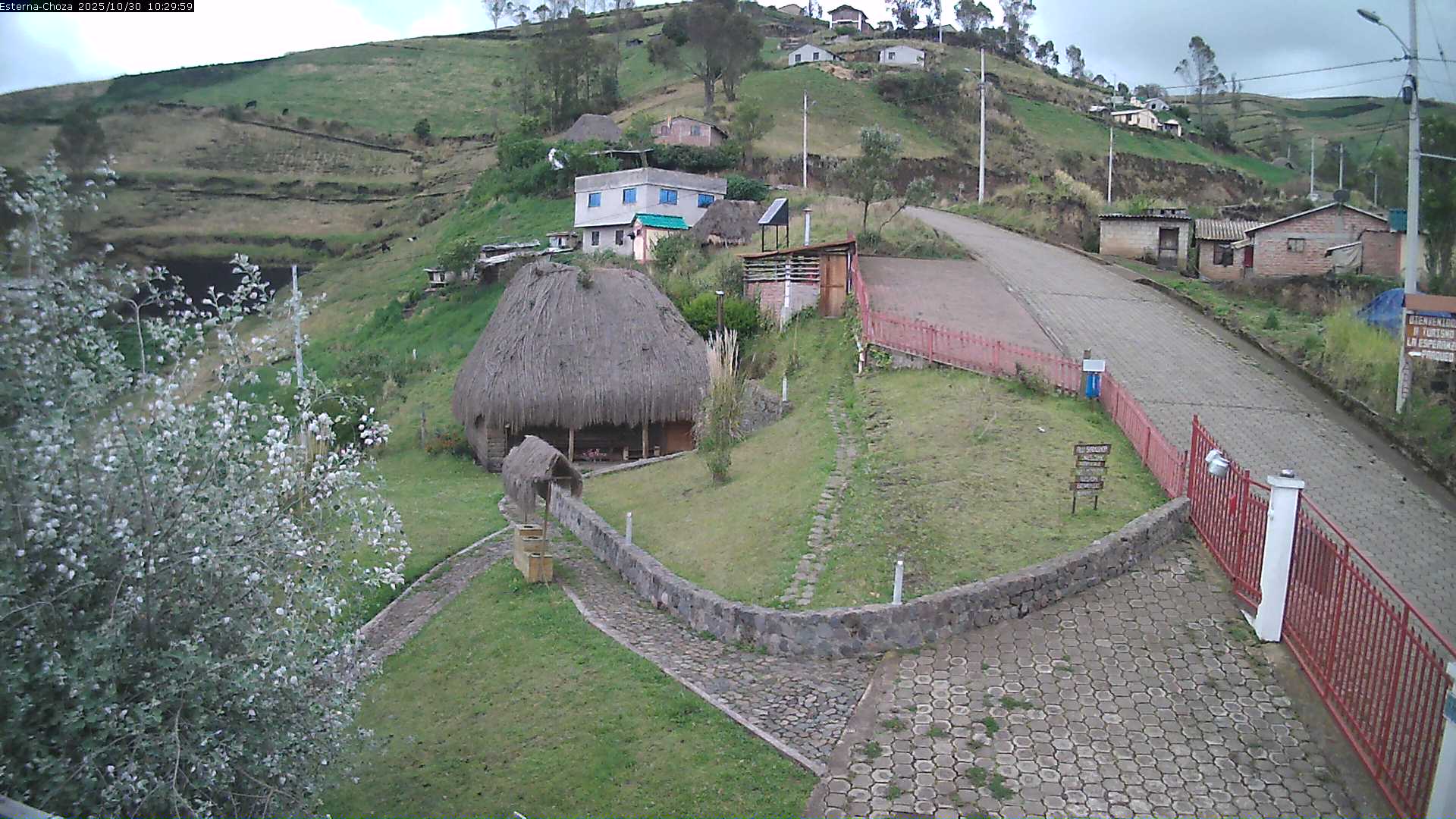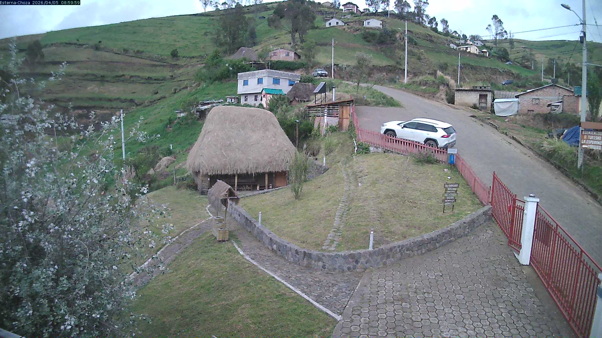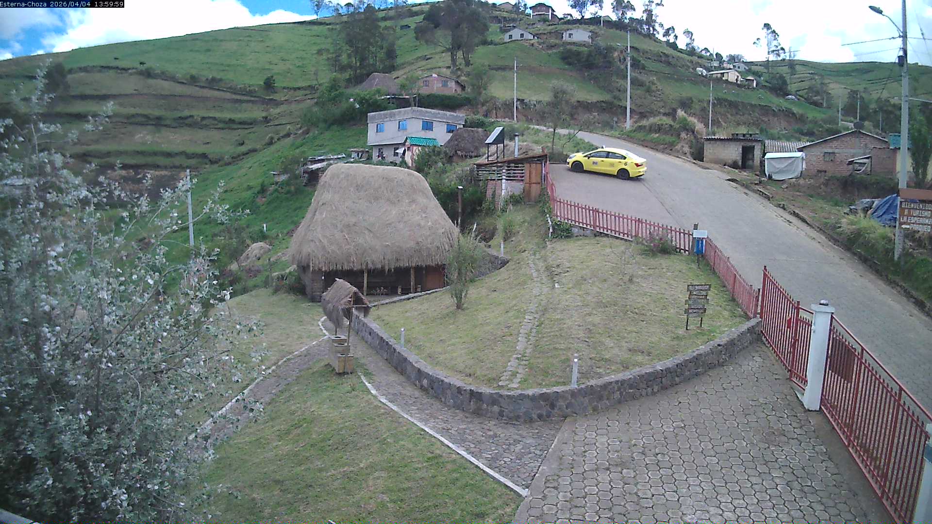 Vista de la Choza (casa construida en estilo tradicional utilizada para el alojamiento de los turistas) realizada en la comunidad La Esperanza, cantón Colta, Ecuador, a una altitud de alrededor 3.600 metros sobre el nivel del mar.