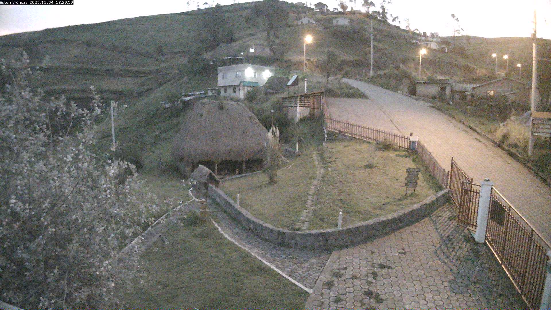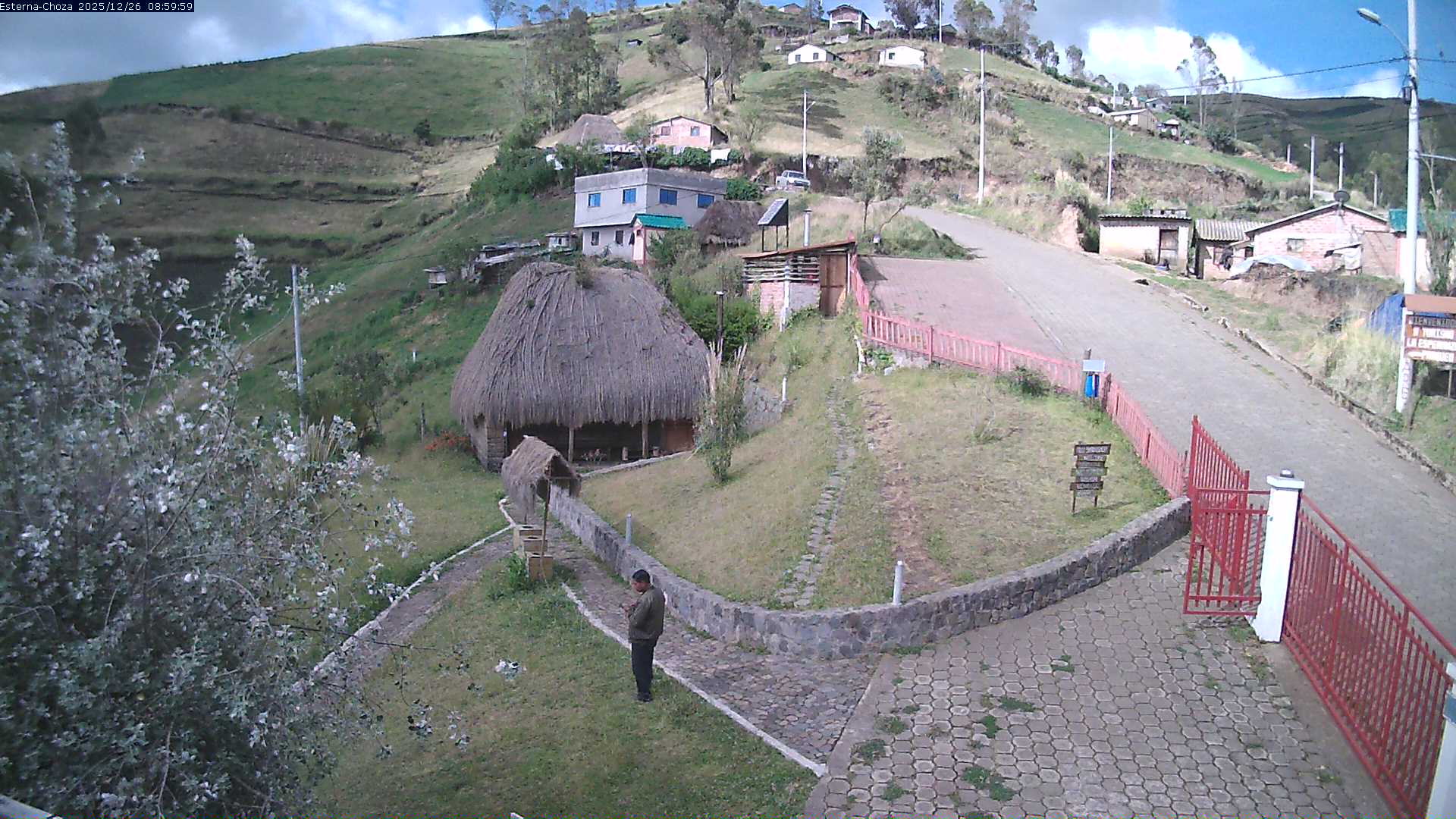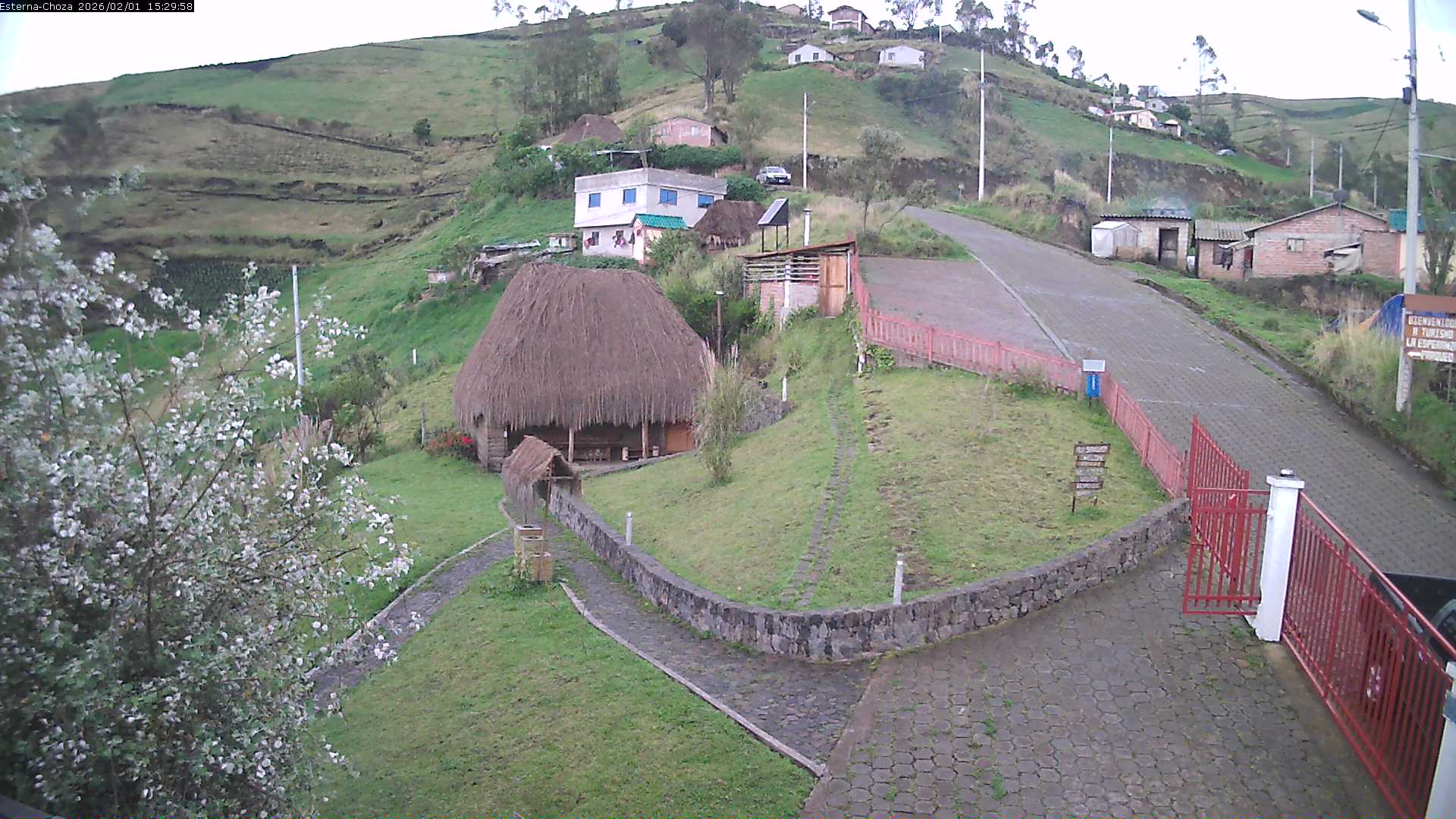 Vista de la Choza (casa construida en estilo tradicional utilizada para el alojamiento de los turistas) realizada en la comunidad La Esperanza, cantón Colta, Ecuador, a una altitud de alrededor 3.600 metros sobre el nivel del mar.